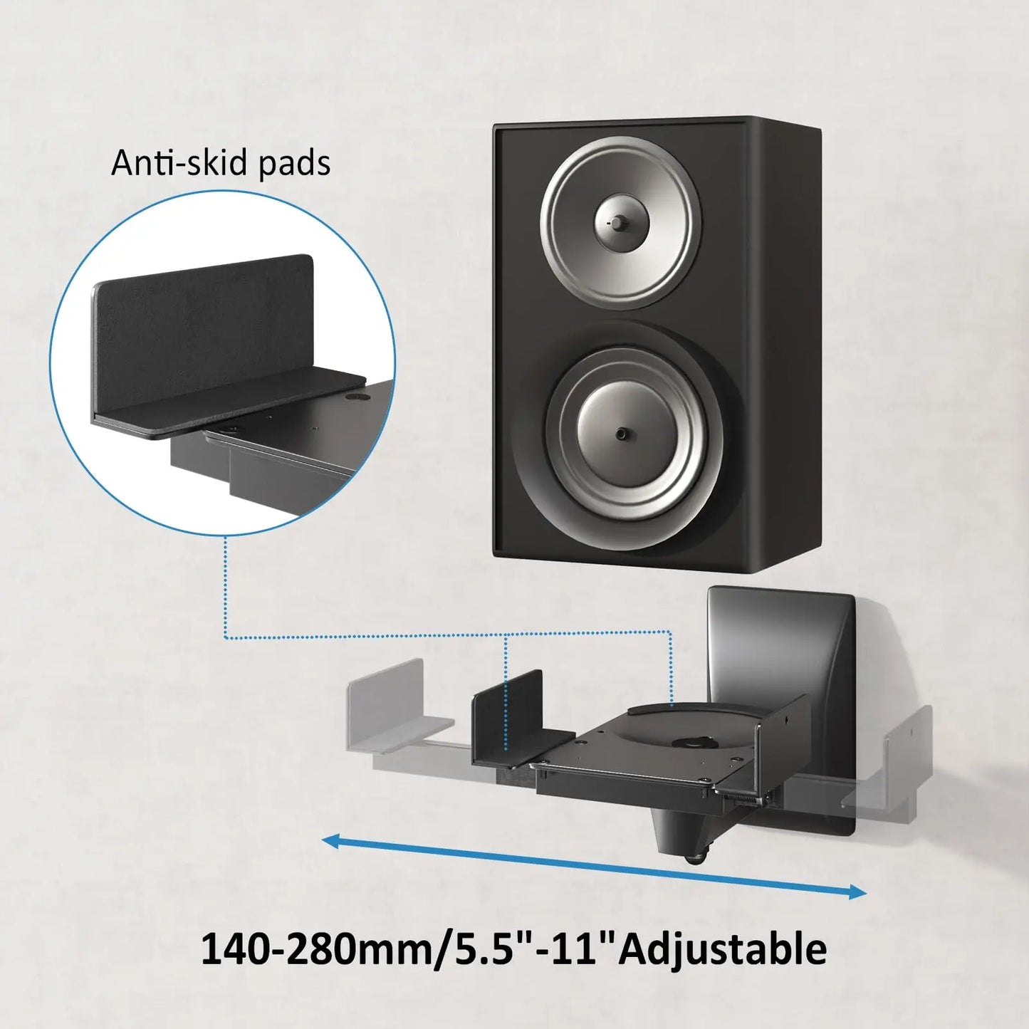 - Compatibility: Designed for most medium to large bookshelf and surround speakers weighing less than 15 kg (passed the 25 kg load test), adjustable in width to fit speakers from 140 mm to 280 mm wide