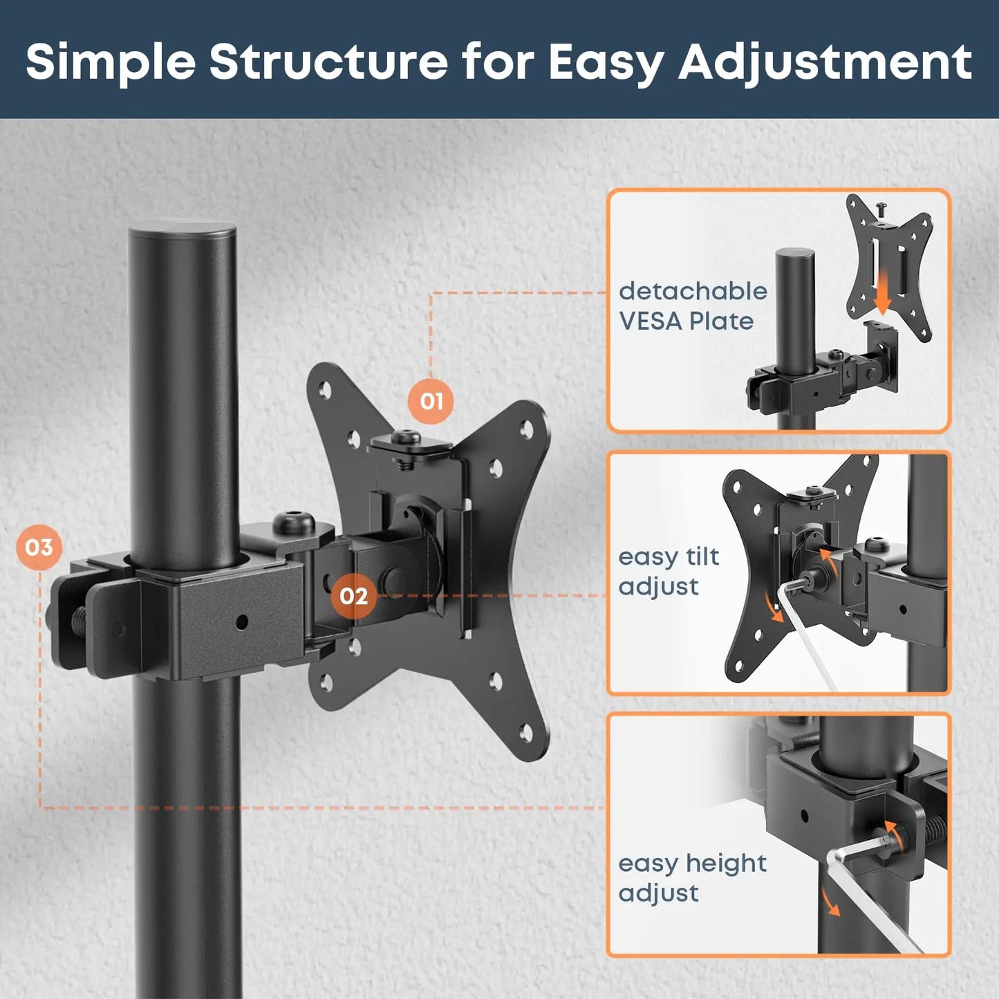 Sturdy construction: monitor mount is very strong and sturdy as it is made of high quality steel and has passed the GS/UL test. Monitor mount table The removable VESA mounting plate makes installation easy.