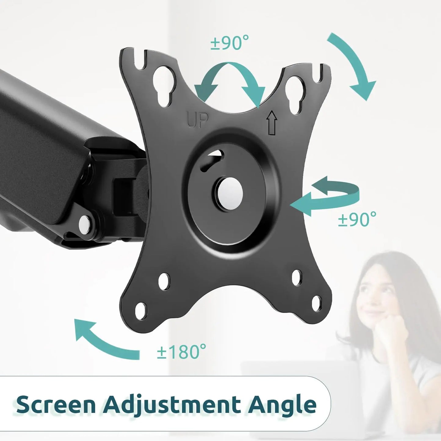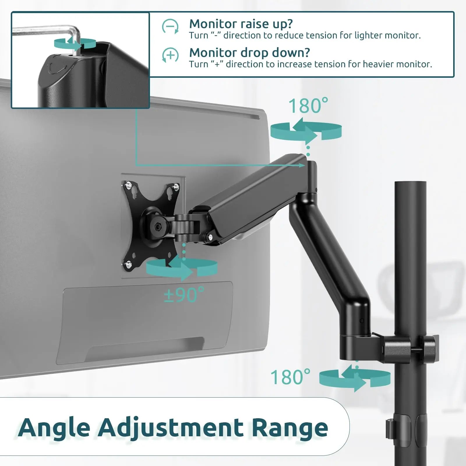 Adjustment range: monitor stand tilt range: +90°~-90°, swivel range: +90°~-90°, screen rotation range: 360°. Help you find the right viewing angle